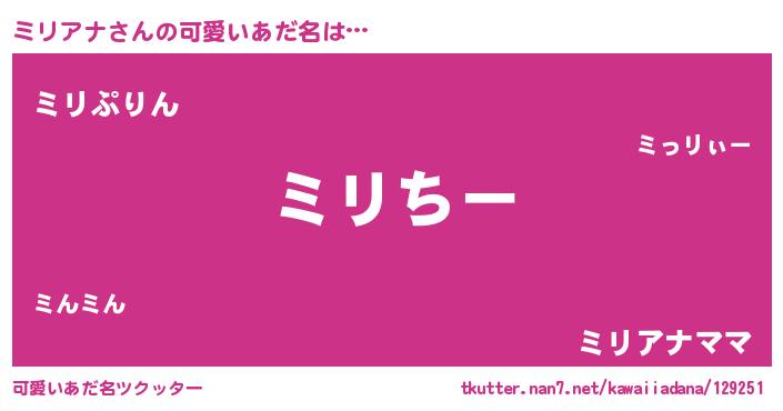 | 意味不明あだ名 | 『ミリアナフォーエバー』 |