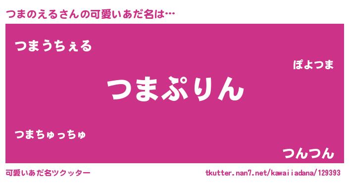 | 男性向けラノベタイトル風あだ名 | 『つまのえる~年齢イコール彼女いない歴の魔法使い~』 |