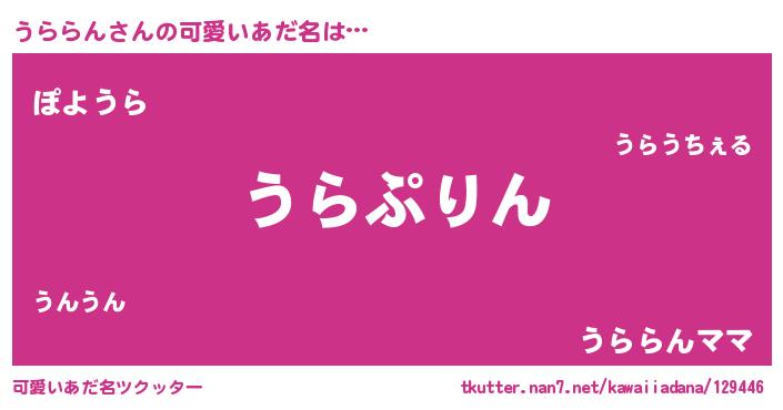 | 意味不明あだ名 | 『ニラ科うららん属』『永久保存うららん』 |