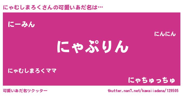 | 男性向けラノベタイトル風あだ名 | 『にゃむしまろく~年齢イコール彼女いない歴の魔法使い~』 |