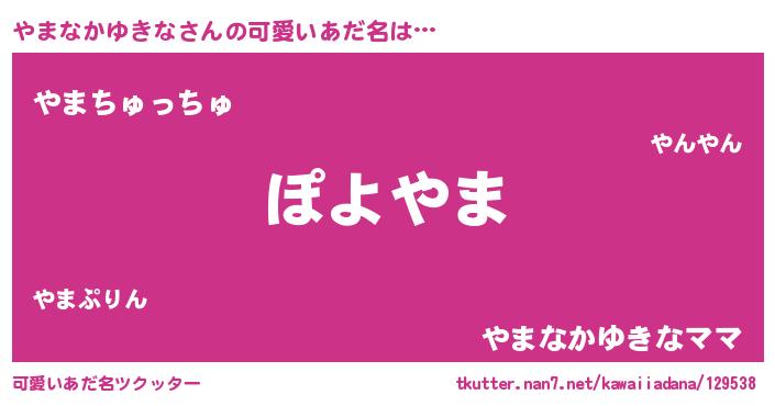 | ヘコむあだ名 | 『やまなかゆきな(笑)』『やまっふぃ~』 |