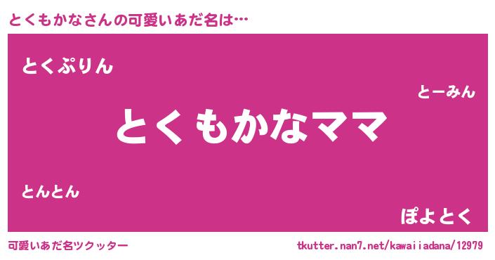 | 男性向けラノベタイトル風あだ名 | 『とくもかなという概念が存在しない退屈な世界 』 |