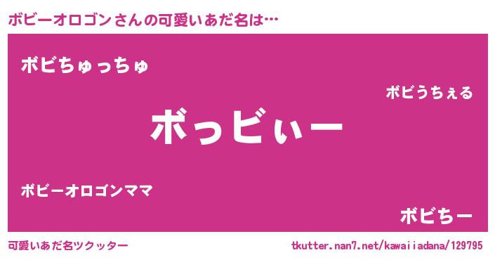 | 男性向けラノベタイトル風あだ名 | 『ボビーオロゴンの嫁は女の子じゃないと思った?』 |