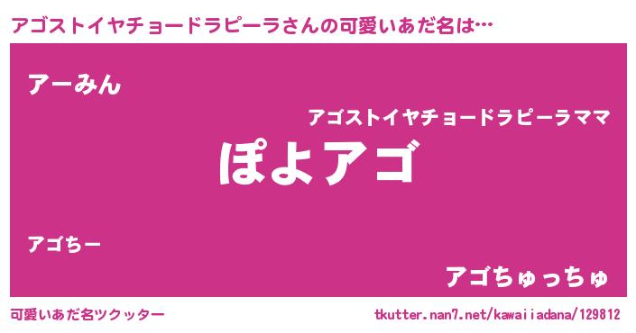 | ヘコむあだ名 | 『アゴストイヤチョードラピーラ(笑)』 |