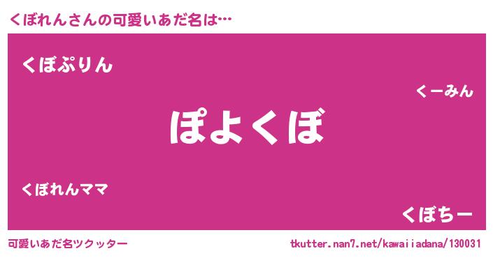 | 男性向けラノベタイトル風あだ名 | 『この素晴らしい世界にくぼれんを!』 |