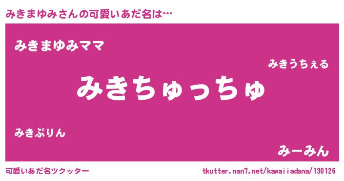 | 女子向けラノベタイトル風あだ名 | 『みきまゆみ恋絵巻』 |
