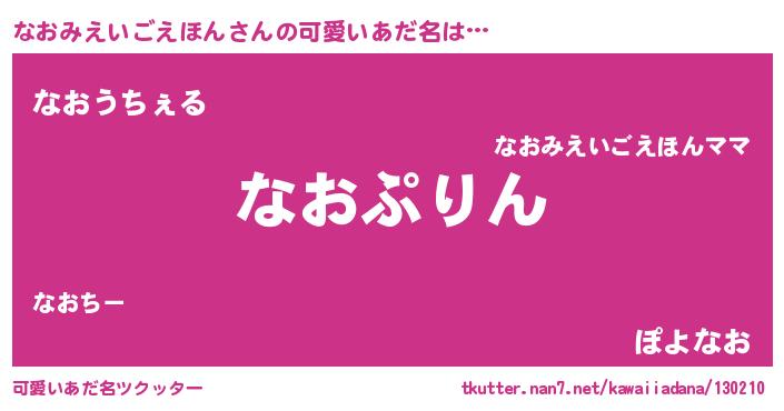 | ヘコむあだ名 | 『なおみえいごえほん(爆)』『なまこ酢』 |