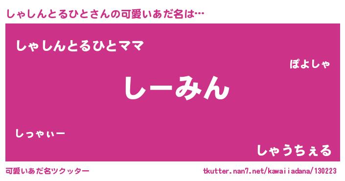 | 恥ずかしいあだ名 | 『しゃちん』『シャリンリン』 |