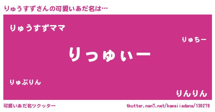 | 男性向けラノベタイトル風あだ名 | 『りゅうすずの嫁は女の子じゃないと思った?』 |