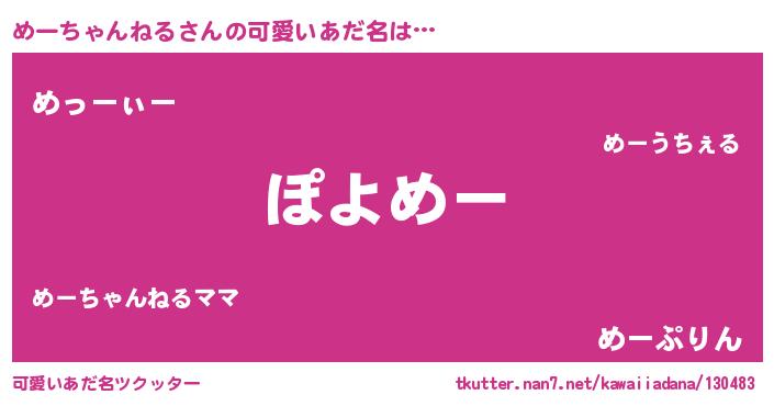 | 意味不明あだ名 | 『住所不定無職めーちゃんねる(14歳)』 |