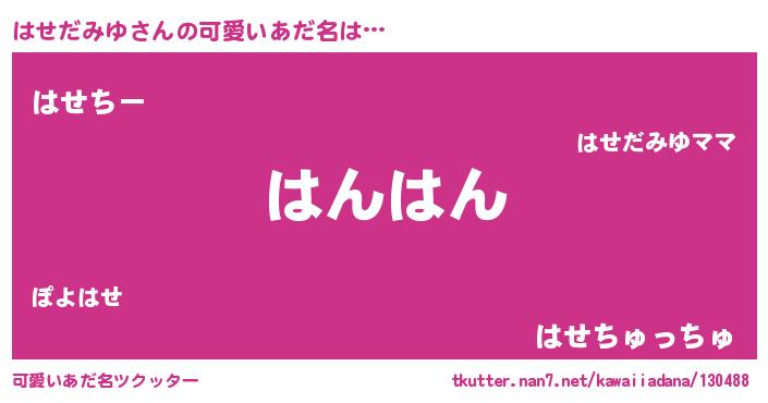 | 恥ずかしいあだ名 | 『プリティーはせだみゆ』『はせっちょ』 |