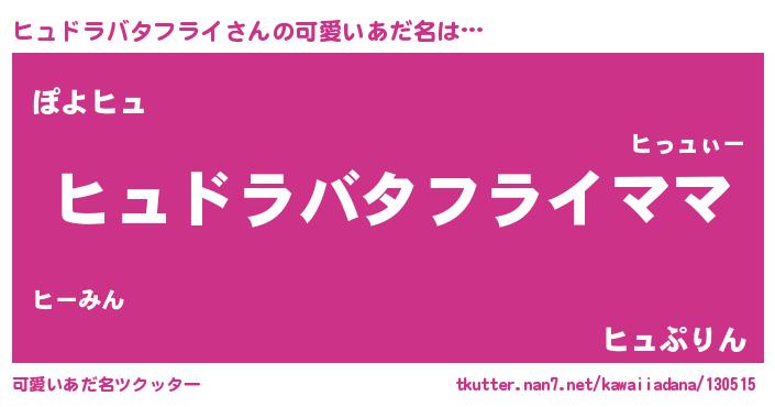 | ヘコむあだ名 | 『ヒュドラバタフライ(爆)』『ヒュっちょ』 |