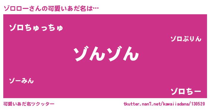 | 恥ずかしいあだ名 | 『プリティーゾロロー』『ゾロっちょ』 |
