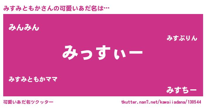 | 男性向けラノベタイトル風あだ名 | 『みすみともかの嫁は女の子じゃないと思った?』 |