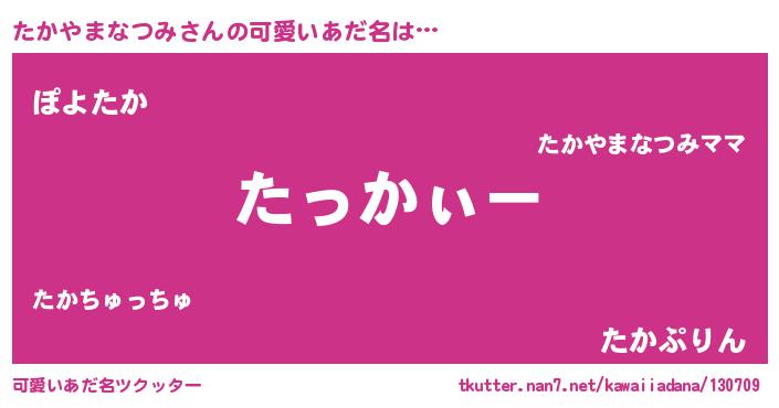 | ヘコむあだ名 | 『たかっぺ』『たかやまなつみ(苦笑)』 |