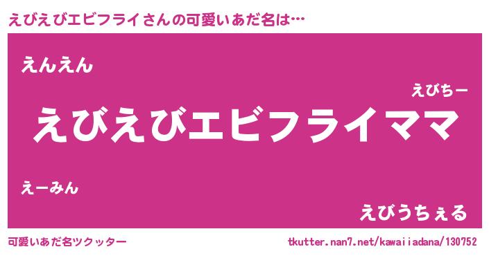 | ヘコむあだ名 | 『えびえびエビフライ(遠い目)』『えびもー』 |