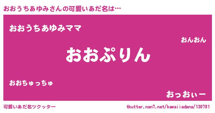 | 男性向けラノベタイトル風あだ名 | 『おおうちあゆみ~年齢イコール彼女いない歴の魔法使い~』 |