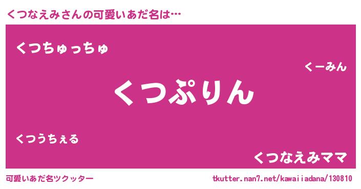 | ヒーロー風カッコイイあだ名 | 『慈愛の使者くつなえみ』『黄金騎士クツ』 |