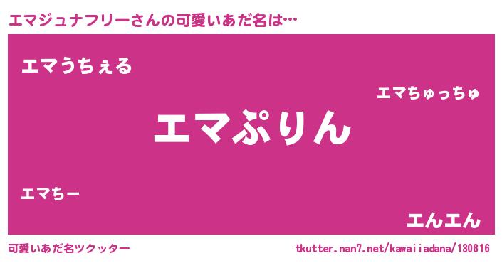 | 男性向けラノベタイトル風あだ名 | 『エマジュナフリー~年齢イコール彼女いない歴の魔法使い~』 |