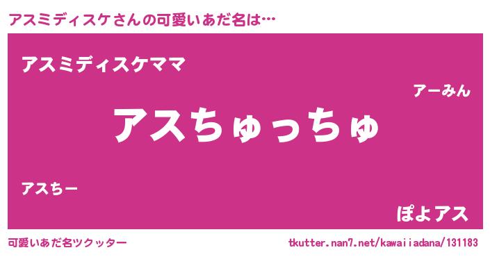 | ヘコむあだ名 | 『アスミディスケ(遠い目)』『豆乳』 |