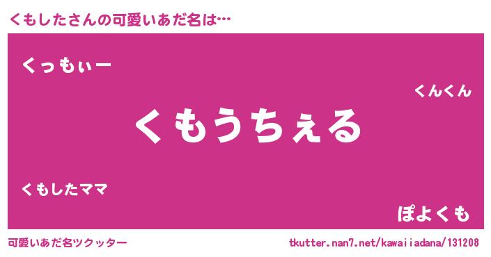 | ヘコむあだ名 | 『くも太郎』『くもっふぃ~』 |