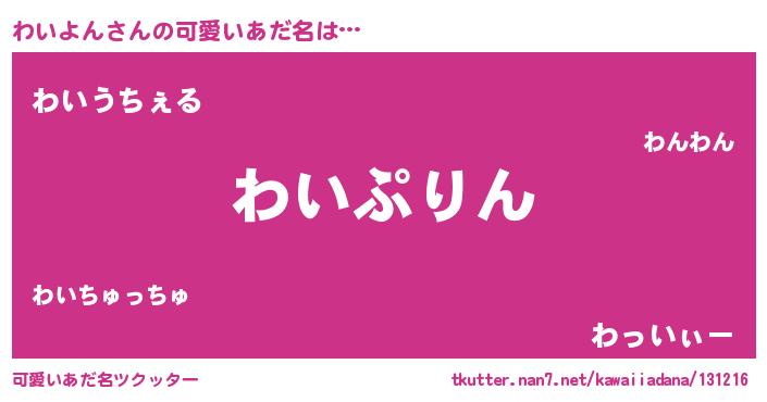 | ヘコむあだ名 | 『わいお』『わいっふぃ~』 |