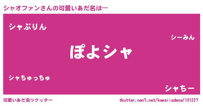 | ヘコむあだ名 | 『なまこ酢』『シャお』『シャにー』 |