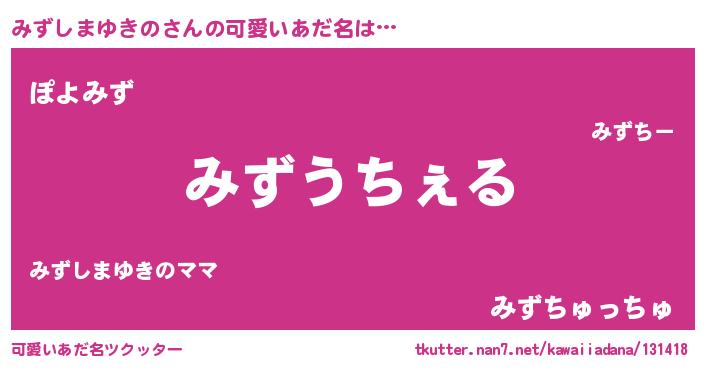 | 恥ずかしいあだ名 | 『ミズシマユキノデラックス』『みずちん』 |
