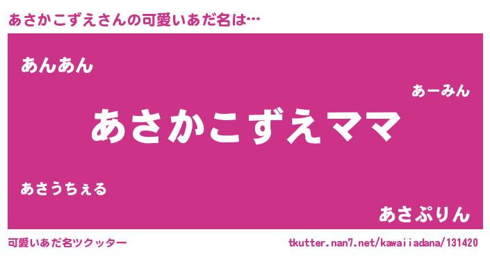 | ヘコむあだ名 | 『あさかこずえ(遠い目)』『あさっふぃ~』 |