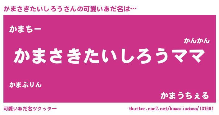 | 女子向けラノベタイトル風あだ名 | 『異世界で失敗しない100のかまさきたいしろう』 |