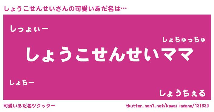 | ヘコむあだ名 | 『しょうこせんせい(苦笑)』『しょを』 |