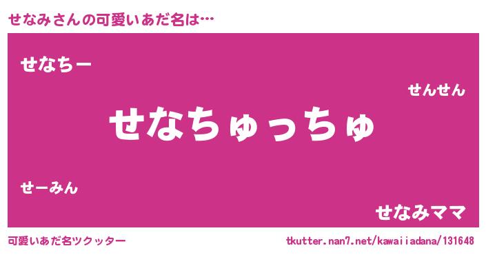 | ヘコむあだ名 | 『豆乳』『せなみ(爆)』『せなにー』 |