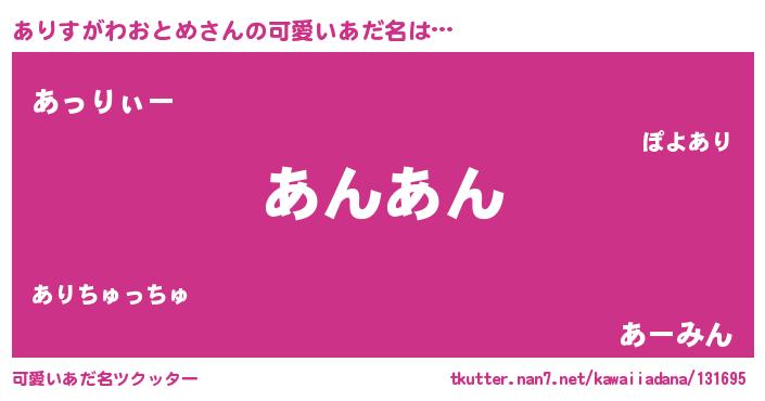 | ヘコむあだ名 | 『ありにゅー』『ありっぺ』『豆乳』 |