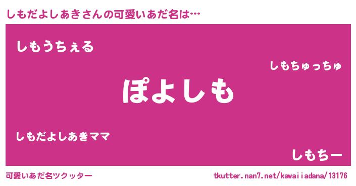 | 意味不明あだ名 | 『住所不定無職しもだよしあき(68歳)』 |