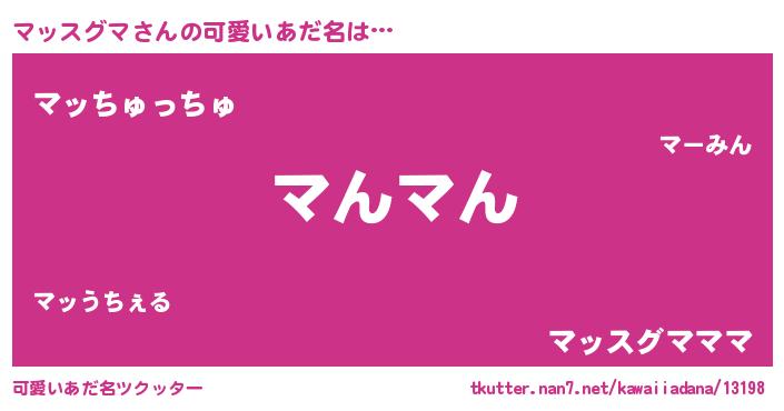 | 2回繰り返すあだ名 | 『マッマッ』『ぶるぶる』『くねくね』 |