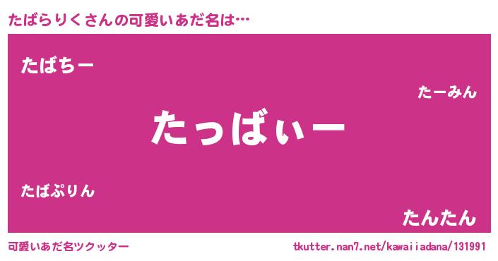 | 意味不明あだ名 | 『とにかく怪しいたばらりく』 |