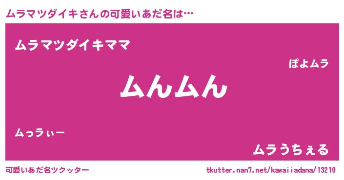 | ヘコむあだ名 | 『ムラふぇ~』『ムラマツダイキ(爆)』 |