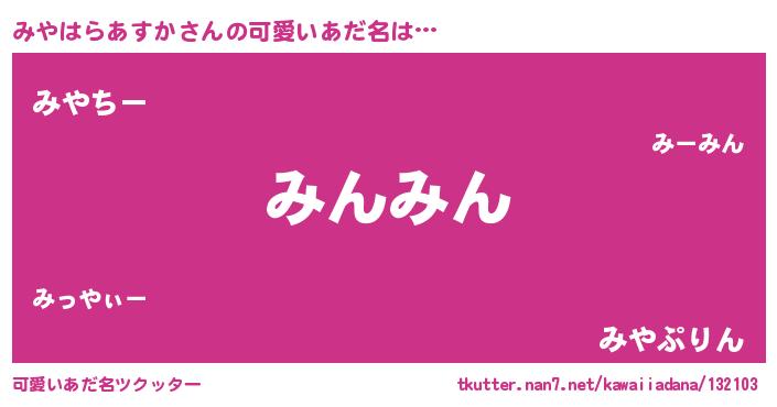 | 恥ずかしいあだ名 | 『プリティーみやはらあすか』『みやちん』 |