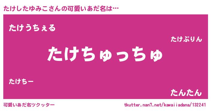 | ヘコむあだ名 | 『たけにゅー』『つくし』『たけっ子』 |