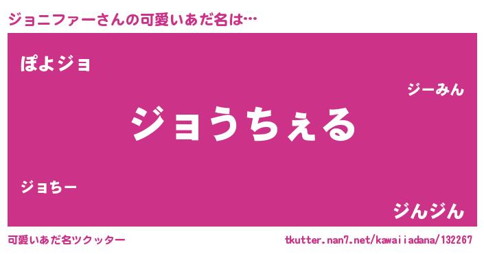 | 男性向けラノベタイトル風あだ名 | 『Re:ジョニファーから始める異世界生活』 |