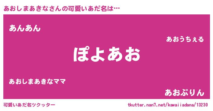 | ヘコむあだ名 | 『あおっふぃ~』『あおしまあきな(笑)』 |