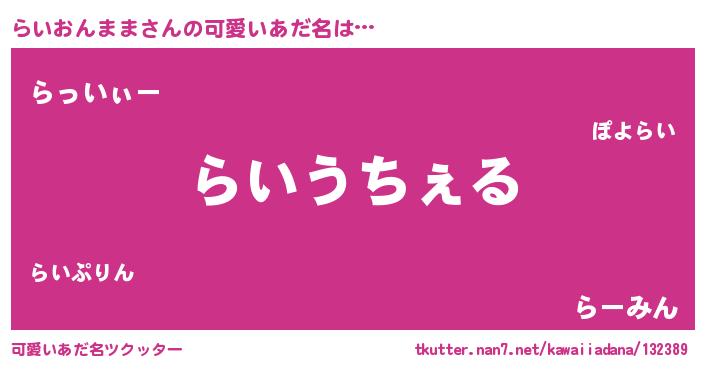 | ヘコむあだ名 | 『らいっぺ』『らいにー』『なまこ酢』 |