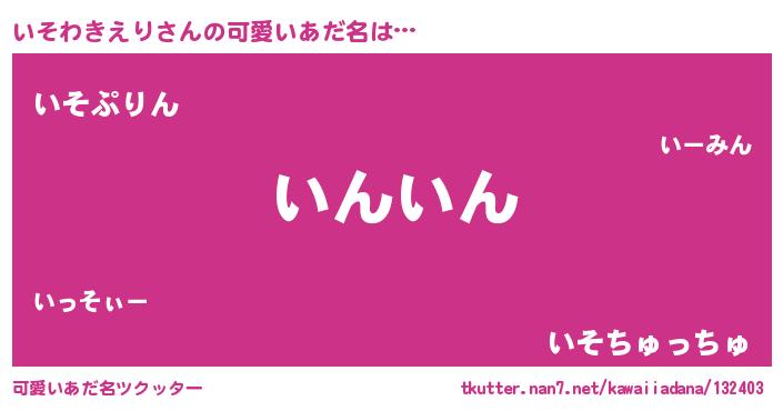 | 男性向けラノベタイトル風あだ名 | 『いそわきえりの憂鬱』 |