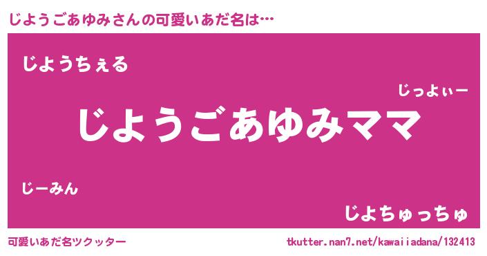 | 男性向けラノベタイトル風あだ名 | 『じようごあゆみという概念が存在しない退屈な世界 』 |