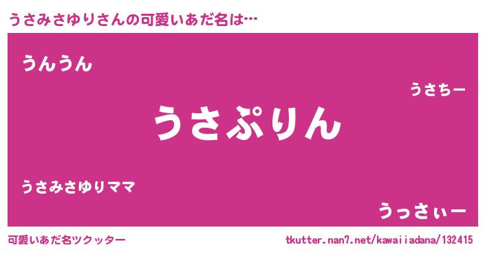 | ヘコむあだ名 | 『うさっふぃ~』『うさぷりん』 |