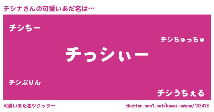| 女子向けラノベタイトル風あだ名 | 『チシナ様がみてる』『チシナ伯爵の花嫁』 |
