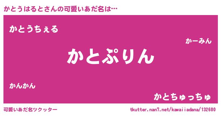 | 女子向けラノベタイトル風あだ名 | 『かとうはるとの玉の輿計画!』 |