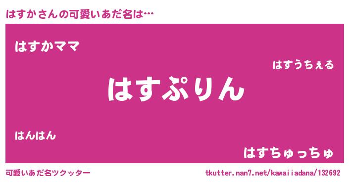 | 意味不明あだ名 | 『しいたけ科はすか属』『永久保存はすか』 |