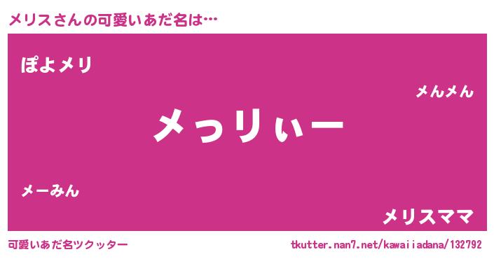 | ポケモン風あだ名 | 『ヒメリス』『メーリイ』『ゼニメリ』 |