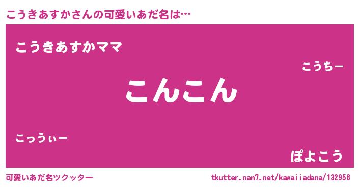 | 恥ずかしいあだ名 | 『プリティーこうきあすか』『こうちん』 |